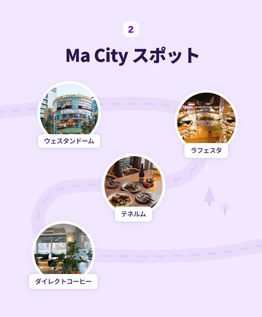 有名なK-POPソングの歌詞にも登場する一山(イルサン)のランドマーク、ウェスタンドームとラフェスタを巡ってみましょう。メンバーたちの幼少期の思い出が詰まった活気あふれるショッピングストリートを歩きながら、曲の世界観を肌で感じてみてください。