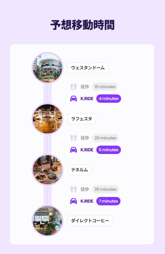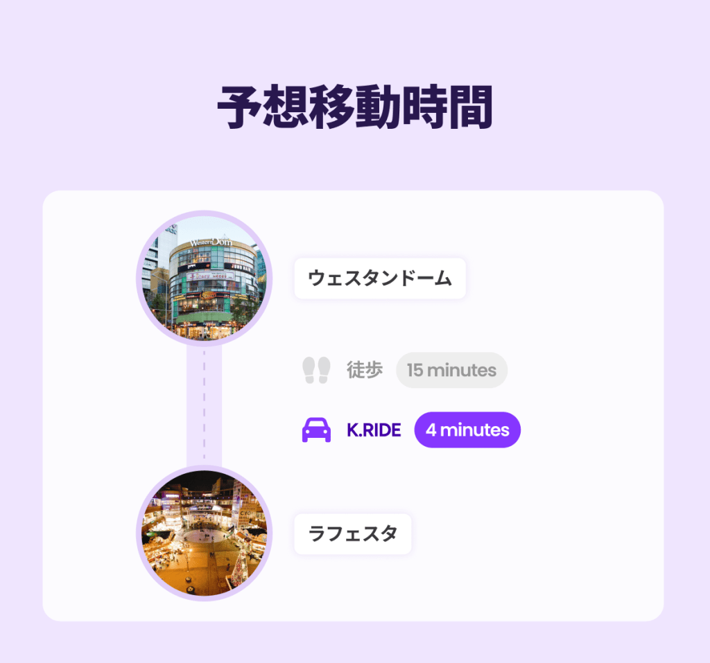 最後まで笑顔で応援活動を楽しむには、 K.RIDE でスマートに移動することを強くおすすめします。 道端でタクシーを待つ必要はありません。 アプリをタップするだけで、専任のドライバーがすぐ近くまで来て迎えに来てくれます!🚕💜